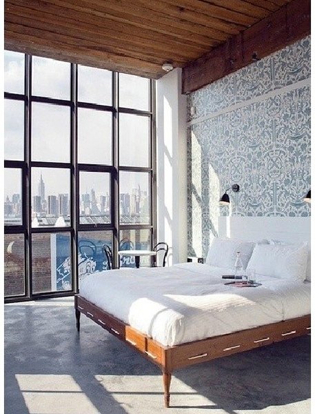 这样的复式loft设计,当然要在顶层装修成大大落地窗,甚至可以是玻璃房呢,让阳光尽情照进,我们也可以躺着欣赏蓝天。
