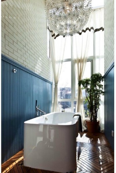 浴室也可以有个落地窗呢?在阳光里沐浴,当然模糊窗帘的装饰,一定挡不住阳光进来。