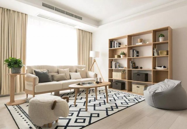 选择家具的时候,要特别注意,不要复杂的设计,注重功能和收纳。原木色家具最百搭,也可以选择胡桃木色的家具,但整个空间色调要保持一致,不要有深有浅。