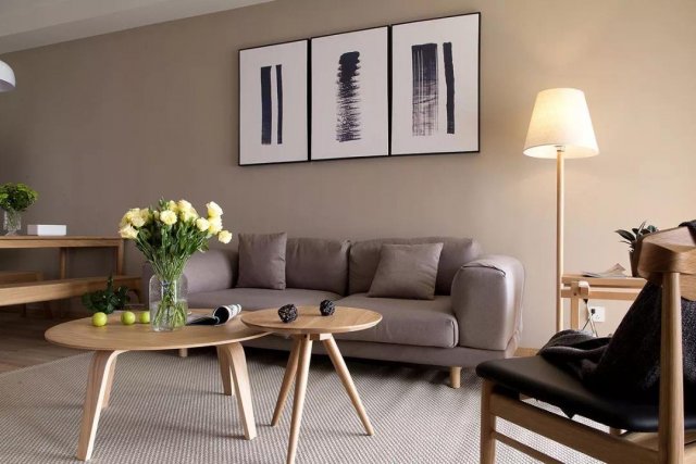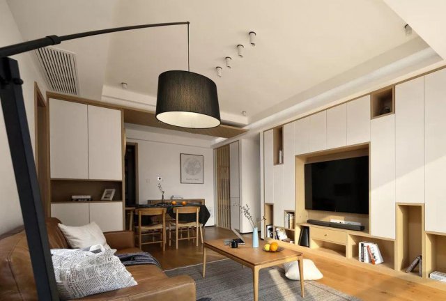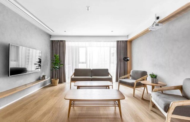 大量的木色作为空间主打基础色,以浅灰色和白色为辅助色。严谨安静的色彩,让空间展现出优雅干净之态,颇有东方禅思禅韵。虽然对墙面、地板颜色的深浅没有硬性规定,不过通常来说,清透的浅色原木家具是更安全的选择,也更适合时下小户型对明亮、轻快的审美追求。