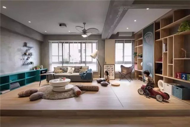对于8090后的刚需来说,现在家里的孩子正好还小,他们需要的是一个宽敞的活动空间,可以在这里尽情地玩耍、游戏,而家长也可以陪伴着孩子一起度过难忘的童年时光,所以把客厅装成儿童互动区,也是一种非常棒的方案。
