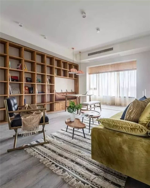 大面积的额书架,放上一家人爱看的书籍,营造一个良好的学习家庭氛围。