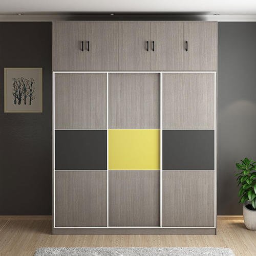 防火板门板基材为防潮板、刨花板或密度板,表面饰以防火板贴面。防火板符合衣柜“美观实用”相结合的发展趋势,因此在市场上长盛不衰。