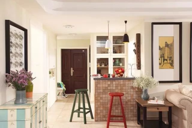 在这一块刷上黑板漆或贴上文化砖,再摆上有感觉的饰品,简直不要太有情调!