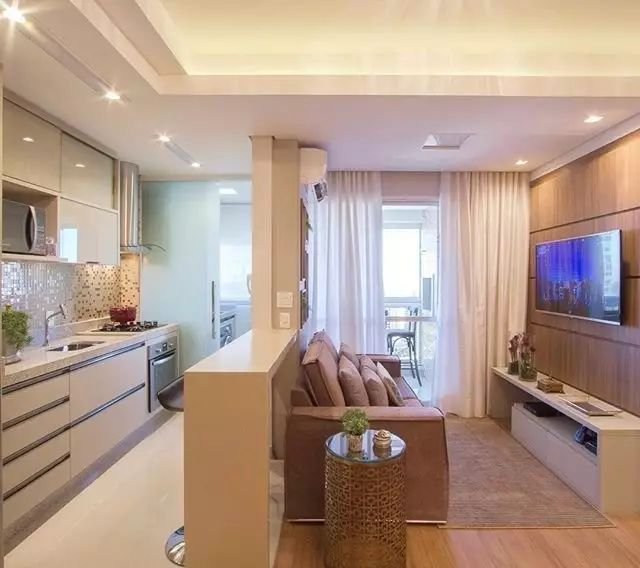 像小户型的家庭,很多人都觉得没有地方适合做吧台,但是中山装修公司网在这里建议您看看家里是否恰巧有一面短墙,并且也不知道可以怎么利用的话,那就可以试试做一个小小的2—3人位的吧台吧!