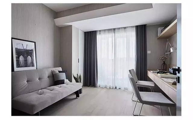 ▲ 书房布置了双人位书桌,同时在书桌后方摆了一张小沙发,平时在这里加班工作累了,可以到沙发上休闲放松一下。